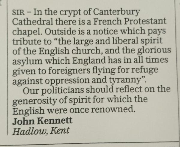 "England has in all times given foreigners flying for refuge against oppression" #migrantcrisis